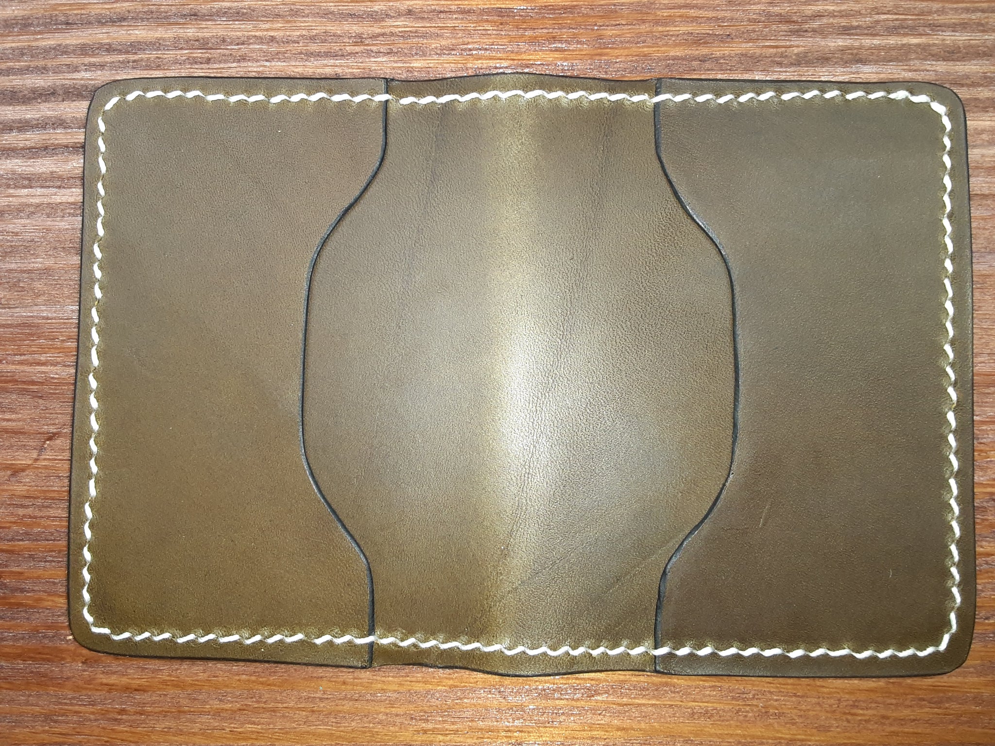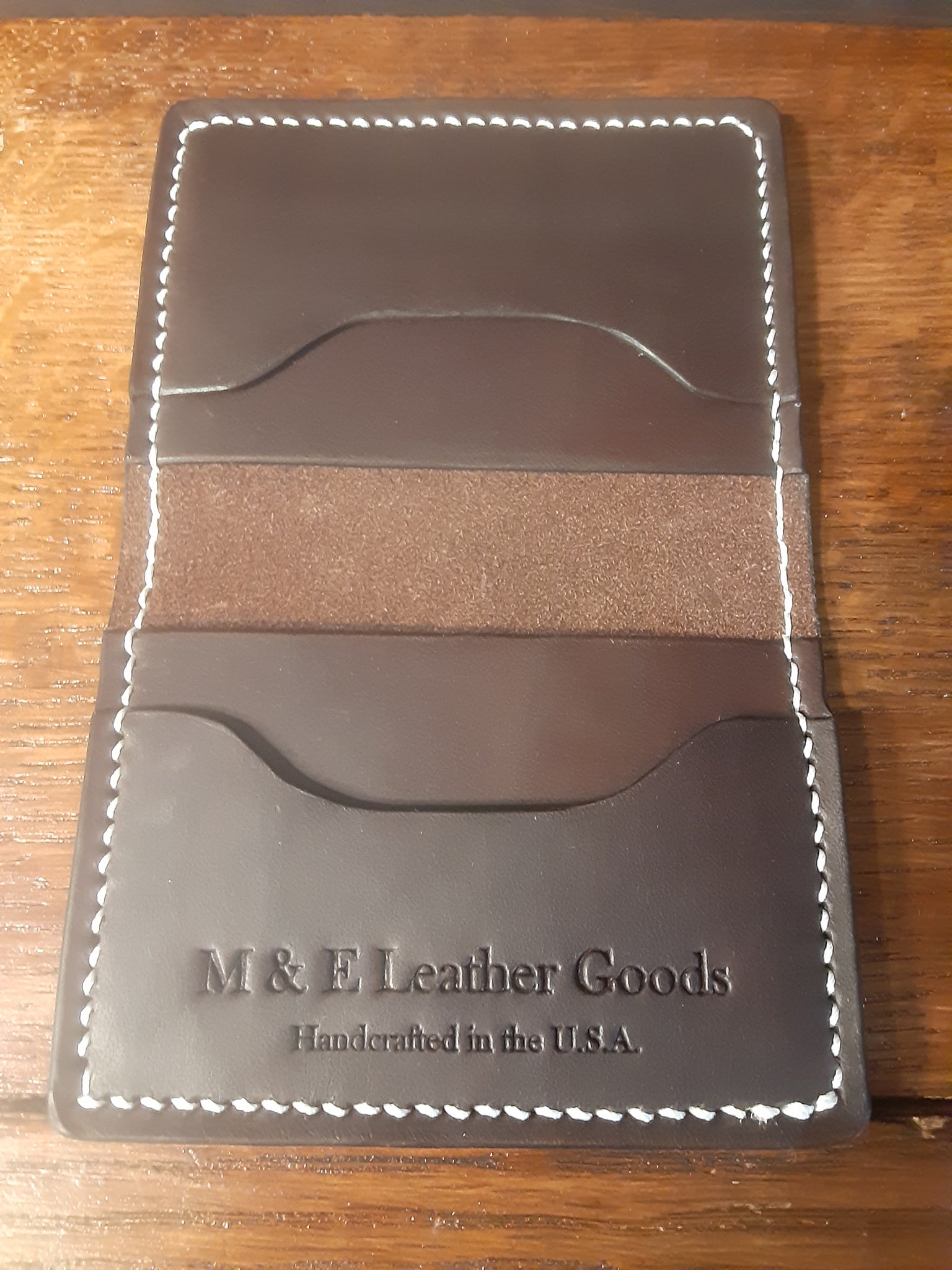 This bifold card wallet is small and compact. With four card pockets, two on the inside, two on the outside, you can easily fit 8+ cards and two additional slots on the inside will fit folded cash and small receipts.