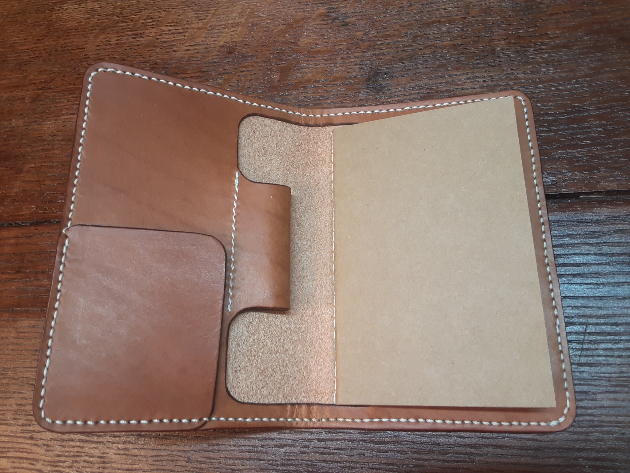 Our small scribe journal is designed to fit a 3 1/2 by 5 1/2 inch notebook. One pocket to fit cards, small papers, etc. and a pen/pencil loop so that you can write down your thoughts, keep lists, and anything else you would like to keep track of.